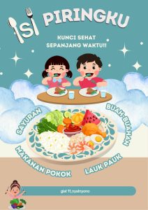 Poster edukatif “ISI PIRINGKU” dirancang sebagai media visual yang memperkenalkan pentingnya makan sehat dan seimbang sejak usia dini. Dengan visual ceria dan menarik, poster ini menyampaikan pesan sederhana namun esensial: makan dengan komposisi gizi seimbang adalah kunci untuk tubuh yang sehat dan kuat sepanjang waktu.