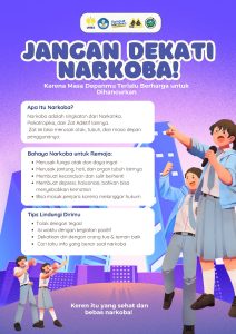 Poster “JANGAN DEKATI NARKOBA! Karena Masa Depanmu Terlalu Berharga untuk Dihancurkan” dirancang sebagai media edukatif untuk mengajak remaja, khususnya siswa SMP, agar menyadari bahaya narkoba dan menjauhinya sejak dini.